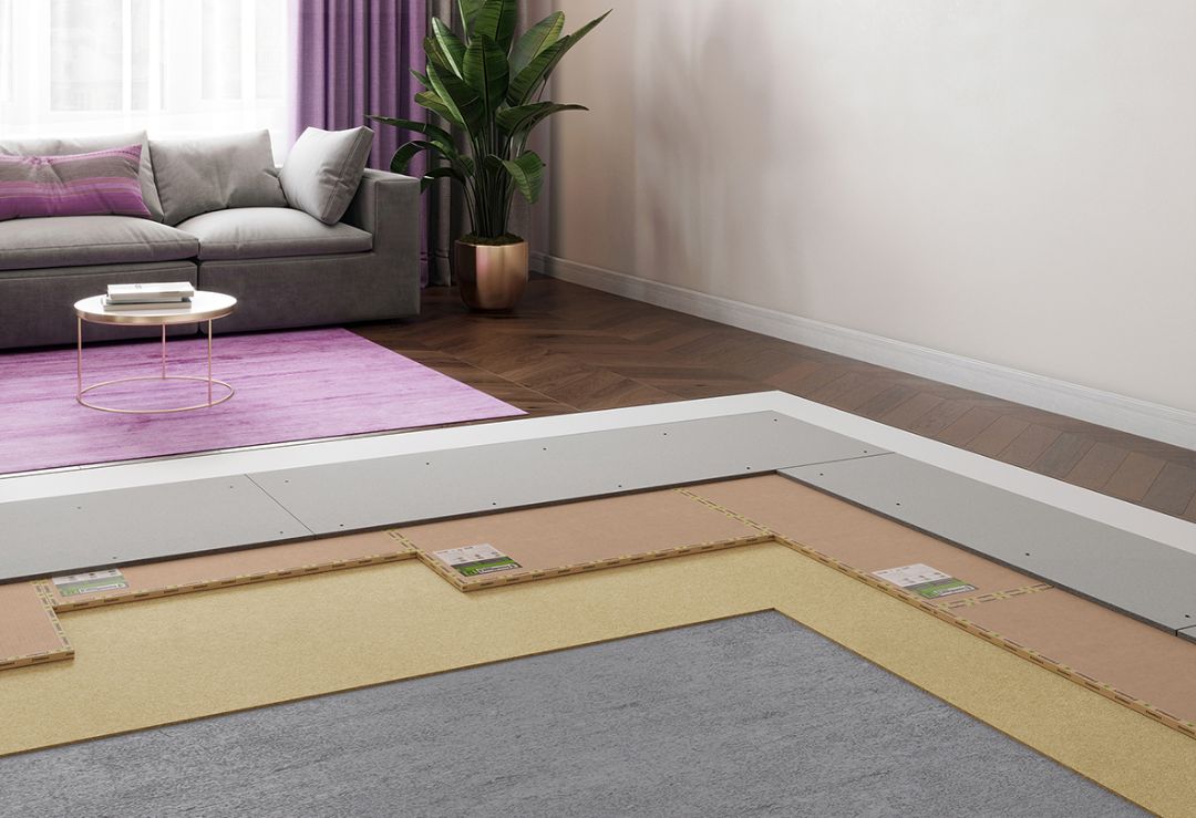 Толщина систем от 6 см до 9 см. В состав решений входят виброизоляционные подложки, демпферные ленты, звукоизоляционные панели с кварцевым песком, базальтовые плиты специальной плотности.
